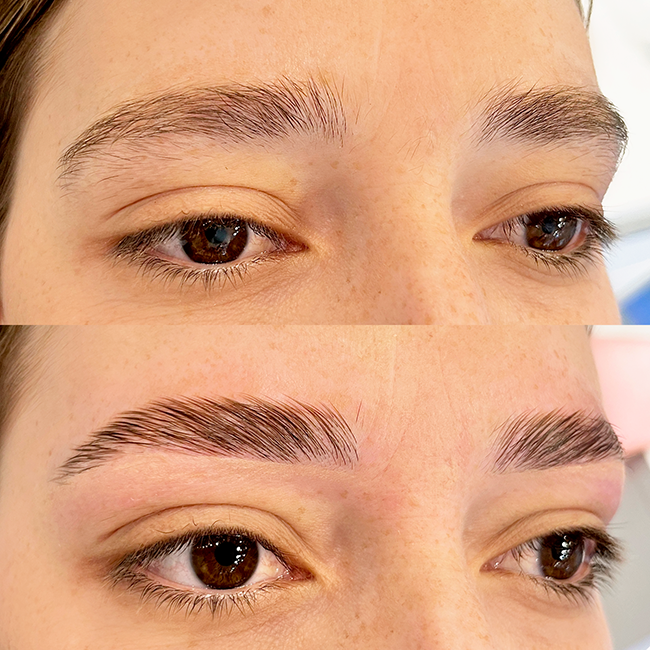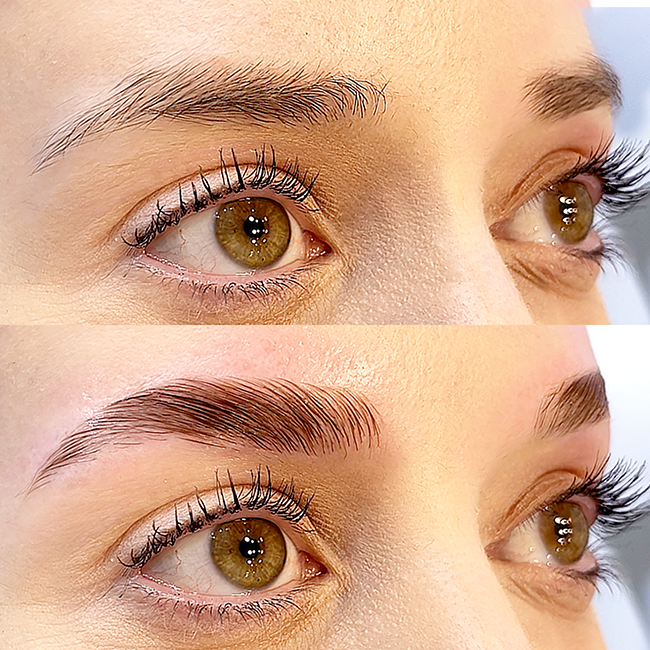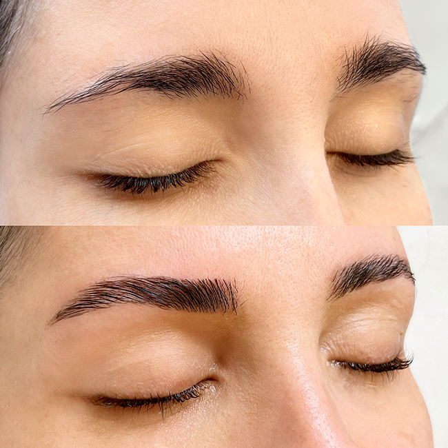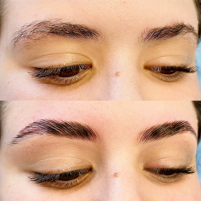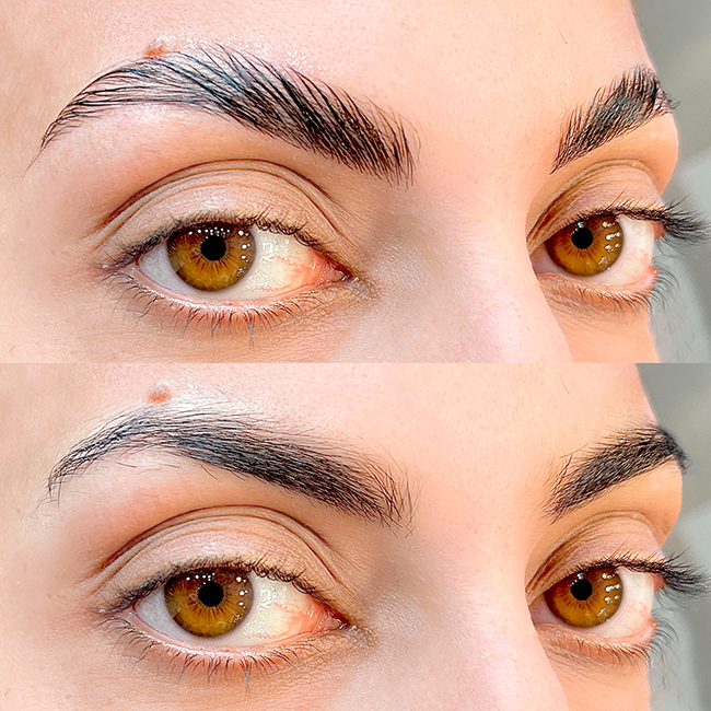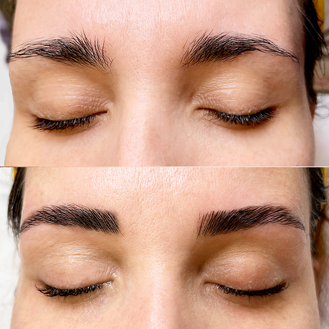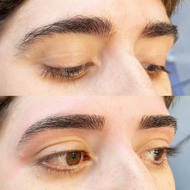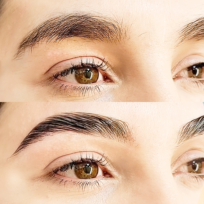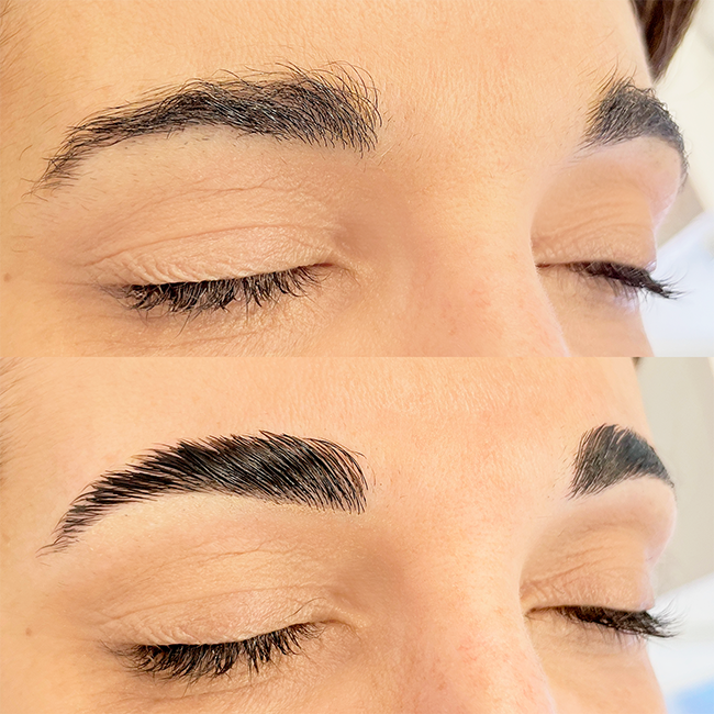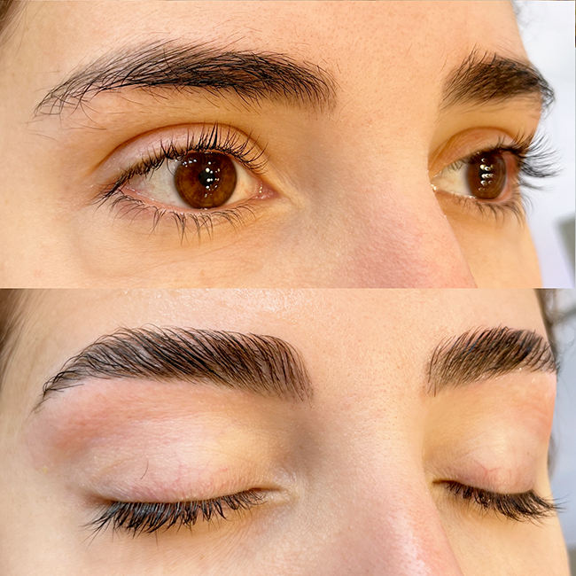 Se trata de un tratamiento semipermanente que se aplica sobre el vello de la ceja y consigue un efecto fijador que mantiene las cejas “peinadas” y uniformes (alisando y dando forma también a los vellos más rebeldes) durante un período aproximado de seis semanas.