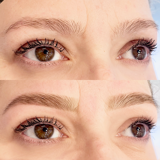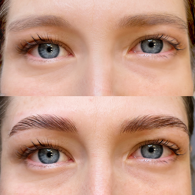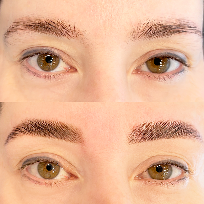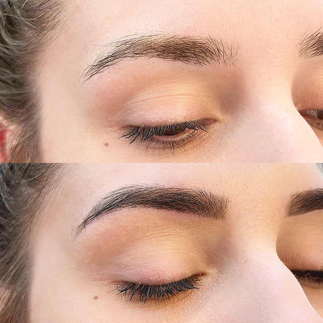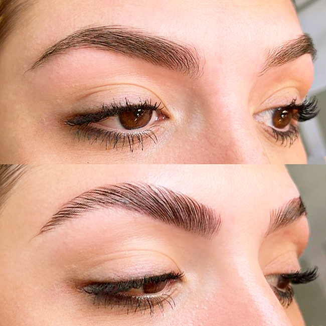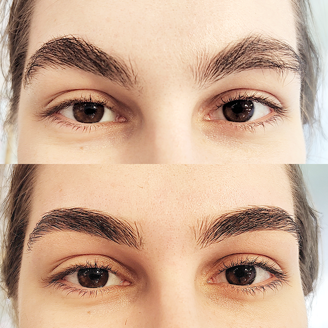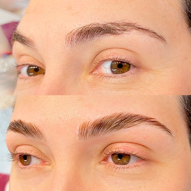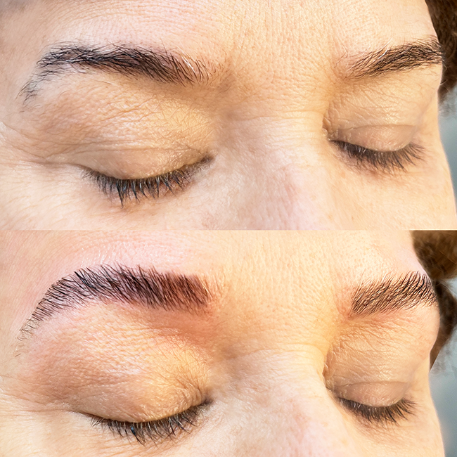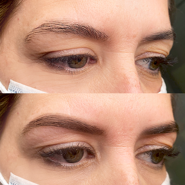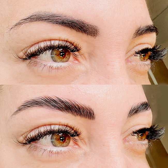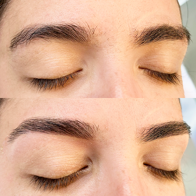 Se trata de un tratamiento semipermanente que se aplica sobre el vello de la ceja y consigue un efecto fijador que mantiene las cejas “peinadas” y uniformes (alisando y dando forma también a los vellos más rebeldes) durante un período aproximado de seis semanas.